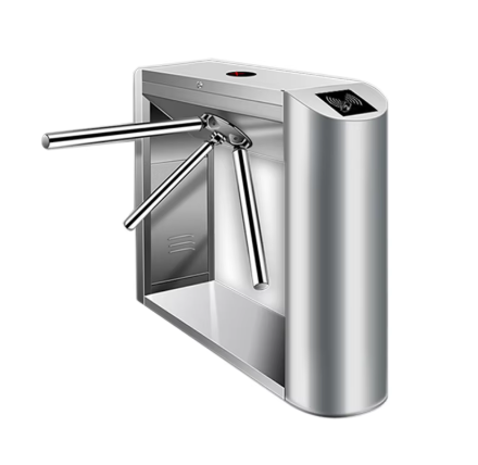 Kompaktes Drehkreuz für Innenbereiche mit eleganter Edelstahl-Optik und sanfter Dämpfung.